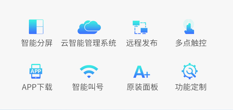 分時音量、背景音樂、滾動字幕、臺標、背景圖片、遠程開關機、流媒體、插播定時播放、多個節目樣式循環播放、定時轉播電視。遠程控制監控廣告機,,可暫停重啟,格式化等操作。。 |