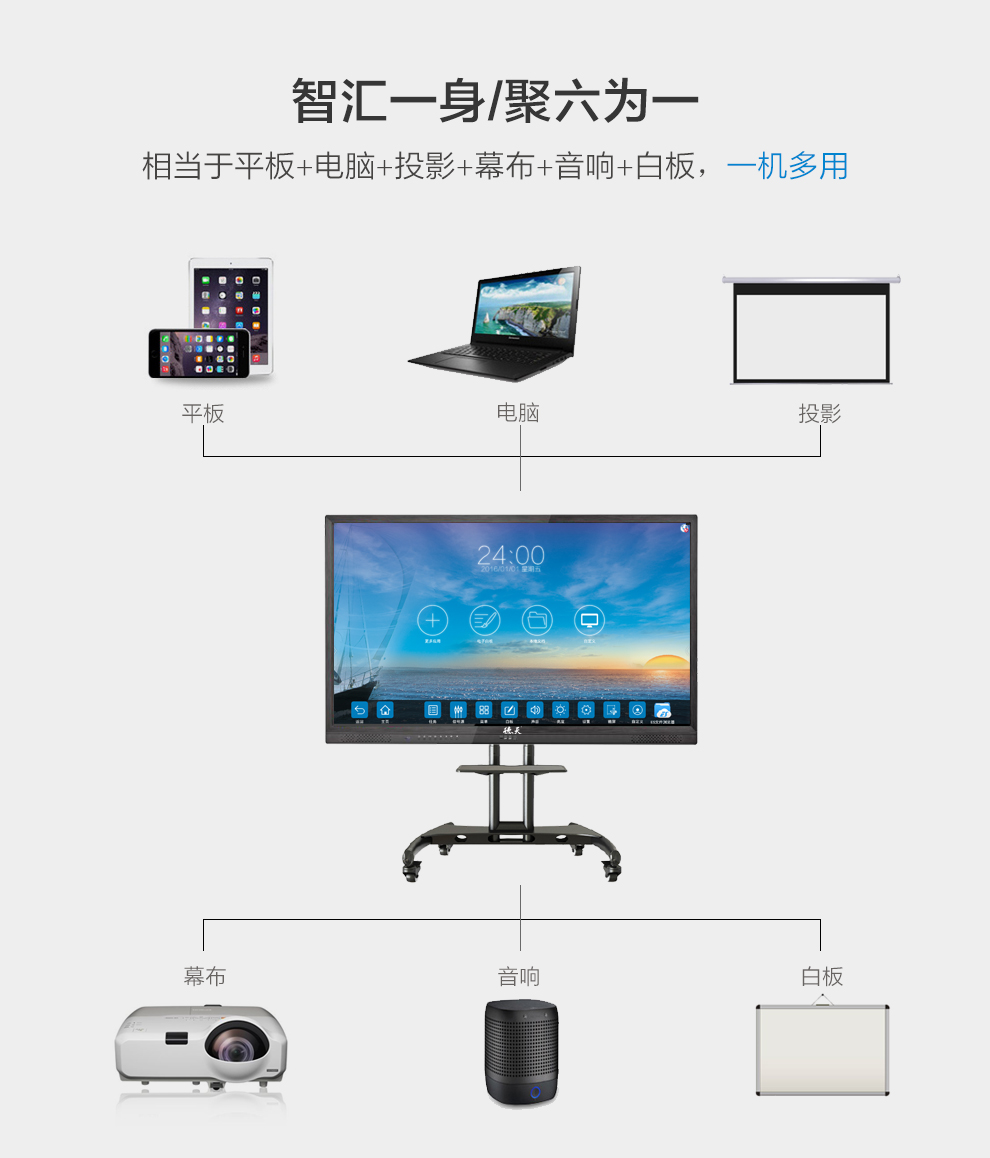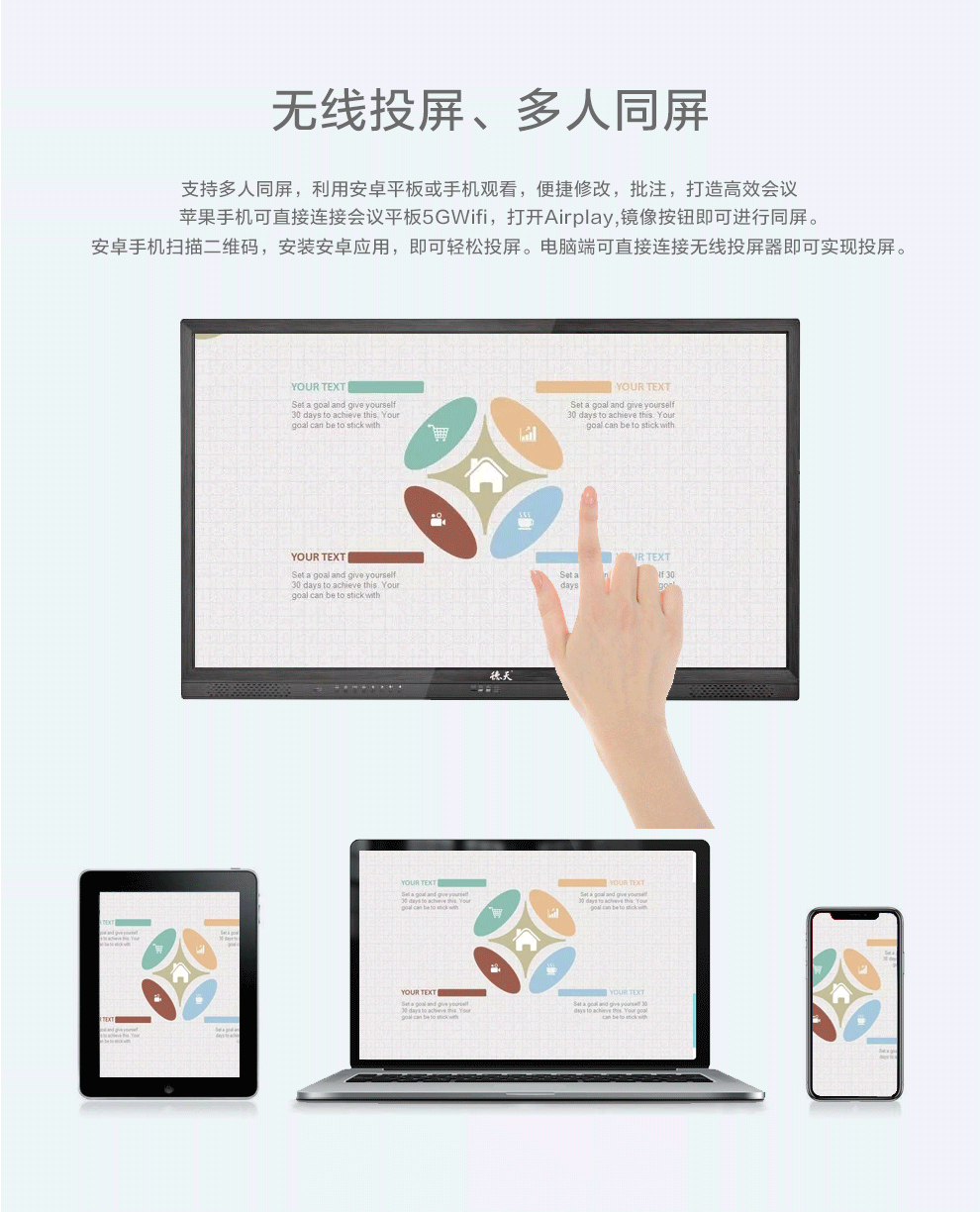 十點觸控,非常穩定,會議白板,無線投屏,遠程協作,主板采用安卓工控主板和X86工控主板,安裝win7或者win10 系統。